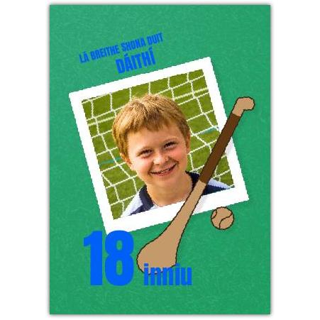 This vibrant card beautifully combines Irish heritage and the excitement of hurling, making it the perfect choice for any fan of this fast-paced GAA game. Featuring a lively green background with a personalised photo space, a hurley graphic, and a traditional birthday message in Irish ("Lá Breithe Shona Duit"), this card captures the spirit of Irish culture and sport.