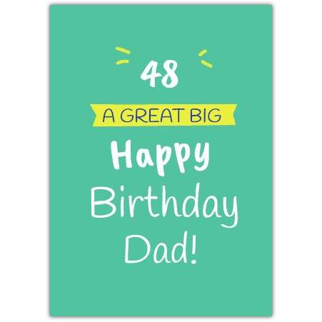 This vibrant green card featuring big, playful text is perfect for making your father's birthday feel truly special. With the personalised age featured prominently, it adds a thoughtful touch that shows you care. The cheerful message, "A Great Big Happy Birthday Dad!", captures the warmth and love you want to convey on this joyous occasion.