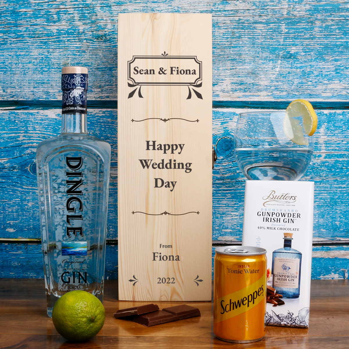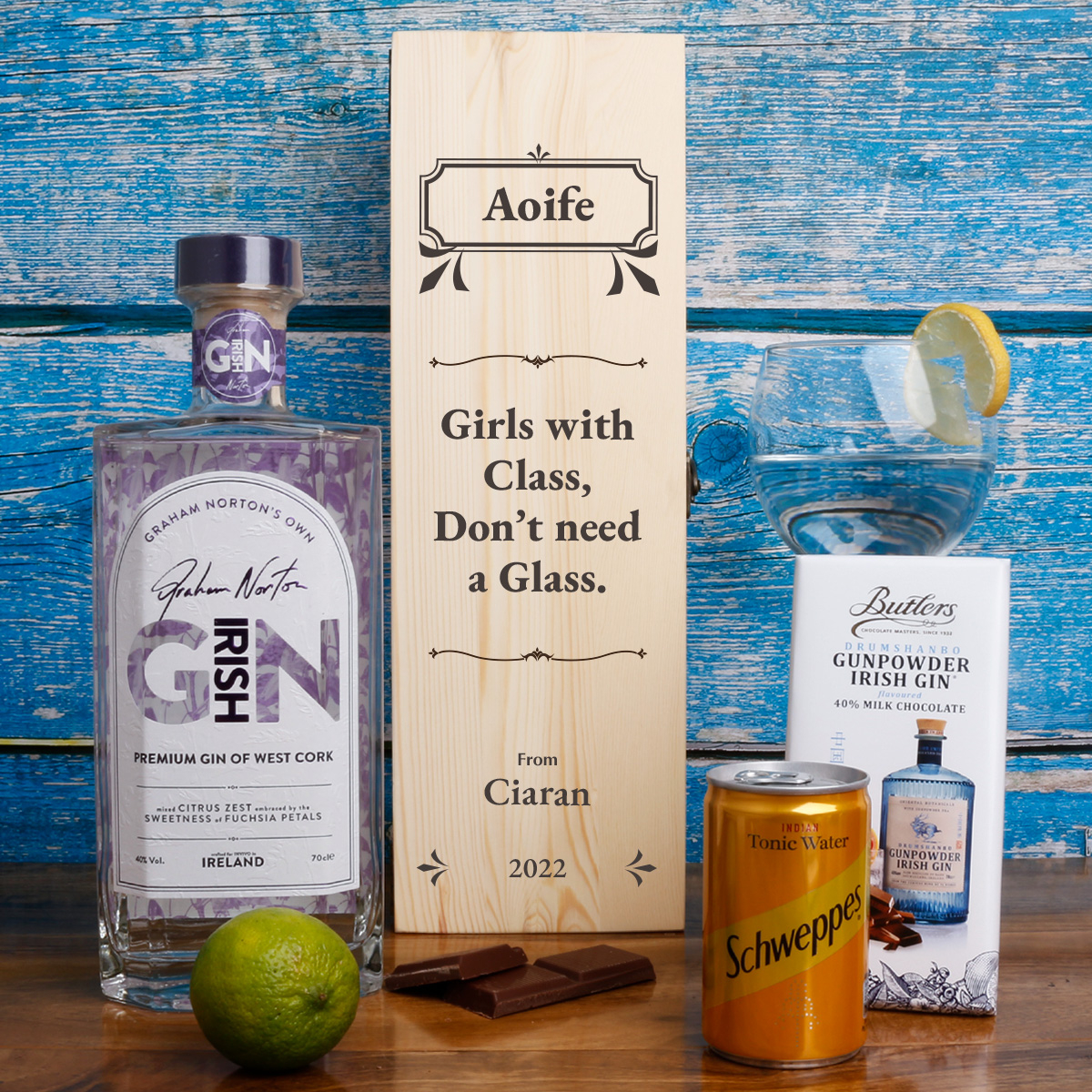 This personalised wooden box with Irish Gin bottle makes the perfect gift for any occasion, specially for Gin Lovers.
