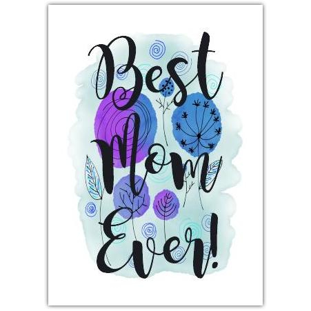 Celebrate your mum with this vibrant and heartfelt greeting card. Featuring a beautiful watercolor design in calming shades of blue and purple, this card proudly declares Best Mom Ever! in elegant, flowing script. It’s the perfect way to show your appreciation and love for the most important woman in your life.