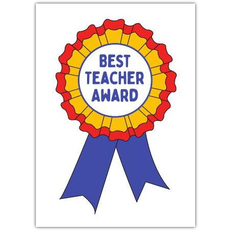 Celebrate excellence in teaching with this vibrant "Best Teacher Award" greeting card. Featuring a colourful rosette design in striking red, gold, and blue, this card is a perfect way to recognise and appreciate the dedication and hard work of a favourite teacher.