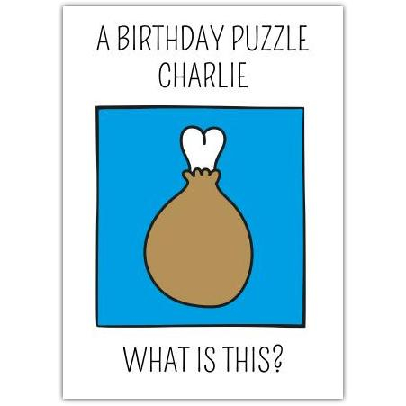 This cleverly designed card features a playful puzzle motif centred around a cheeky chef’s theme, guaranteed to spark smiles and laughter. The simple yet humorous illustration invites the recipient to solve the “birthday puzzle,” making it an interactive and fun way to celebrate.