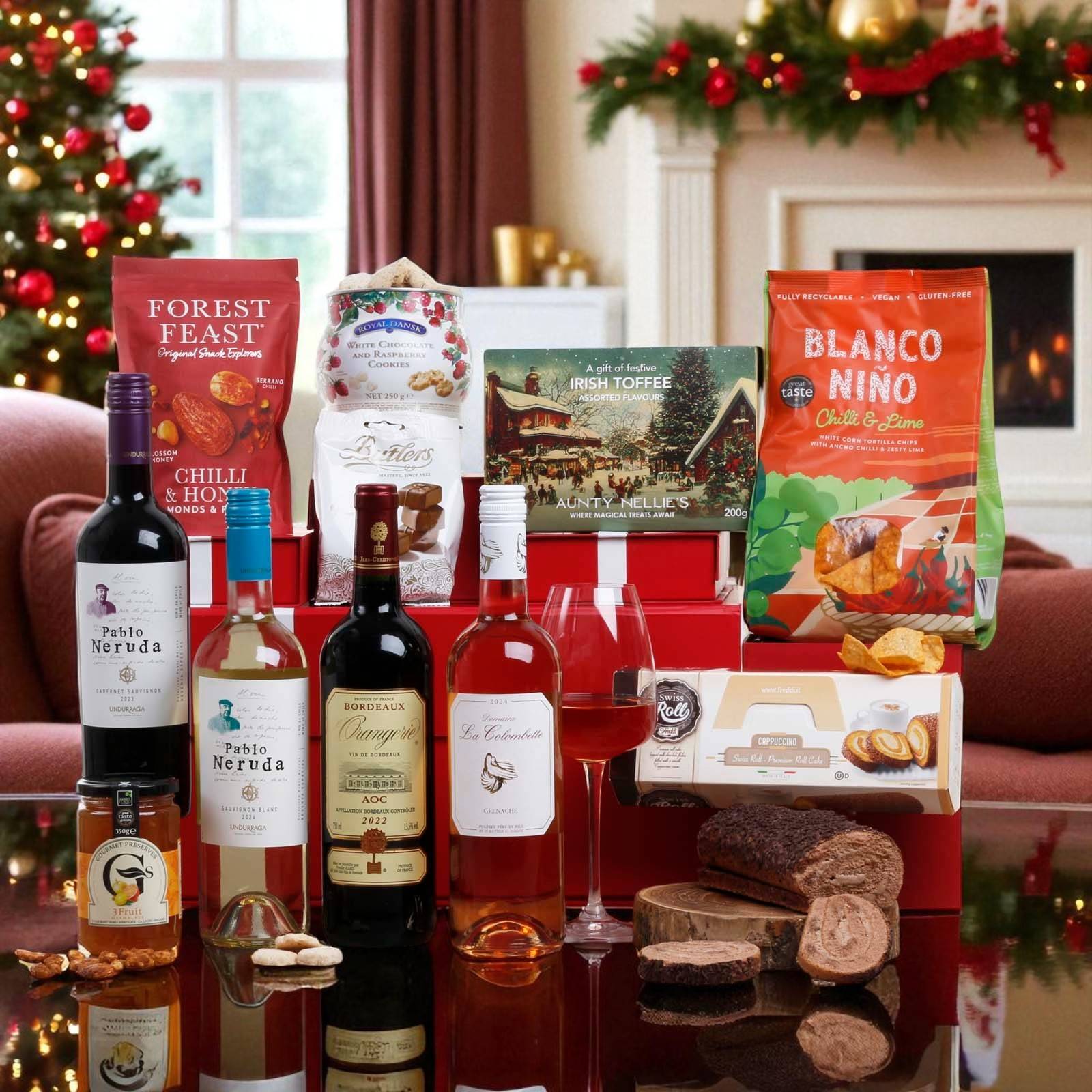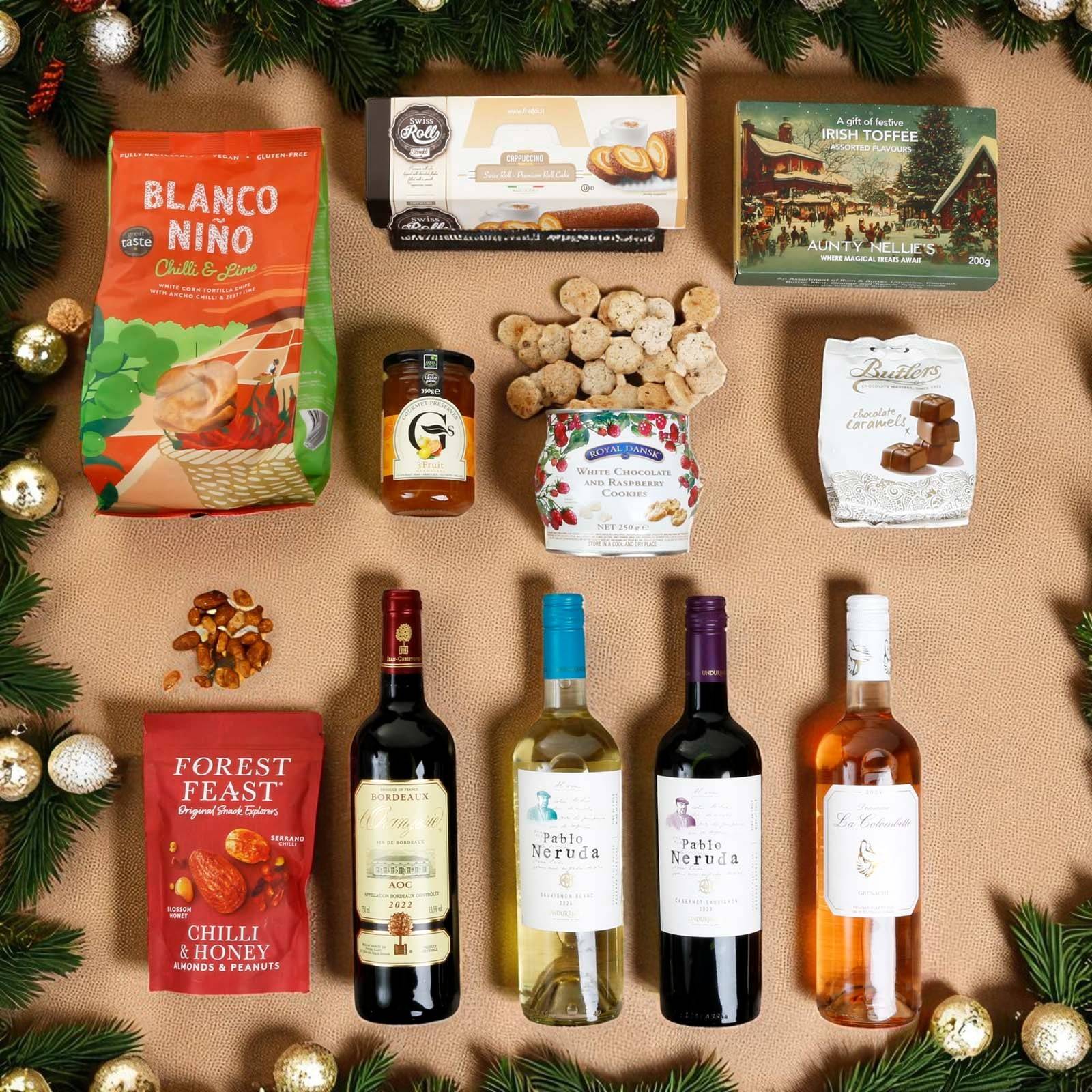 Three superb wines, Irish cream and a plethora of delicious goodies make up this sophisticated and scrumptious hamper arrangement.