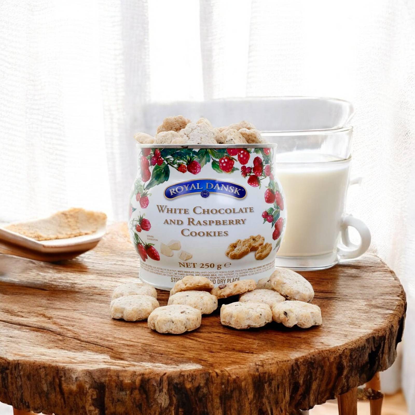 - White Chocolate & Raspberry Cookies in Globe Tin 250g