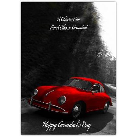 This Classic Grandad Happy Grandad's Day Greeting Card is the perfect way to show your appreciation to the cherished grandad in your life. Featuring a striking red vintage car set against a sleek black and white background, this card beautifully combines elegance with a touch of nostalgia — just like your classic grandad himself.