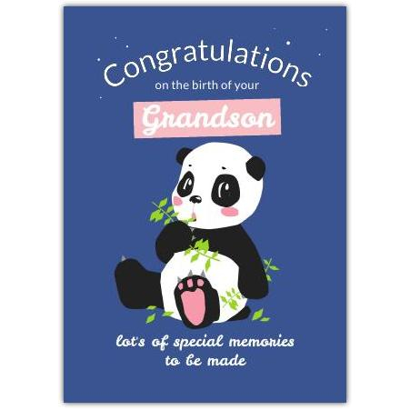 Celebrate the arrival of a precious new grandson with this charming Baby Congratulations Blue Panda Greeting Card. Featuring an adorable, hand-drawn baby panda on a calming blue background, this card sends warm wishes for lots of special memories to be made with the newest family member.