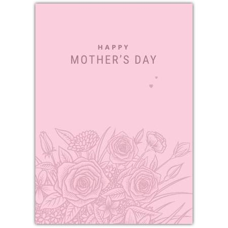 Show your appreciation with this beautifully designed Mother's Day greeting card, featuring a delicate pink background adorned with a subtle and intricate floral sketch. The simple yet heartfelt "Happy Mother's Day" message is perfectly complemented by the gentle rose motif, making it a timeless choice to express your love and gratitude.