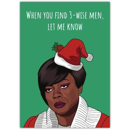 Spread some festive cheer with this witty and cheeky Christmas greeting card. Featuring a playful illustration of a stylish woman donning a Santa hat and a bold caption that reads, "When you find 3-wise men, let me know," this card offers a fun, lighthearted take on the holiday season. Perfect for anyone who appreciates humour and a bit of sass, it’s ideal for friends, family, or colleagues with a knack for witty banter.