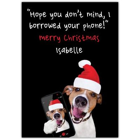 Funny Christmas Dog Greeting Card with Personalised Borrowed Phone Message