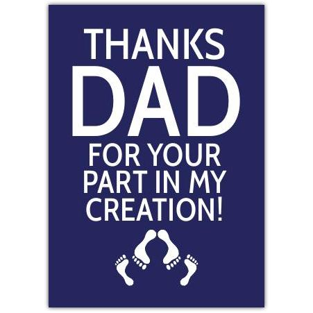 Funny Fathers Day Card Thanks Dad For Your Part In My Creation in Blue