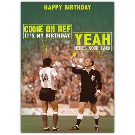 Funny Football Referee Birthday Card with Humorous Yellow Card Design