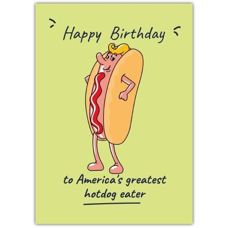 This fun and quirky birthday card is perfect for anyone who loves a laugh and, of course, hotdogs! Featuring a cheerful anthropomorphic hotdog with a cheeky grin against a bright background, it sends the message: "Happy Birthday to America’s greatest hotdog eater." A wonderfully playful way to show your sense of humour on their special day.