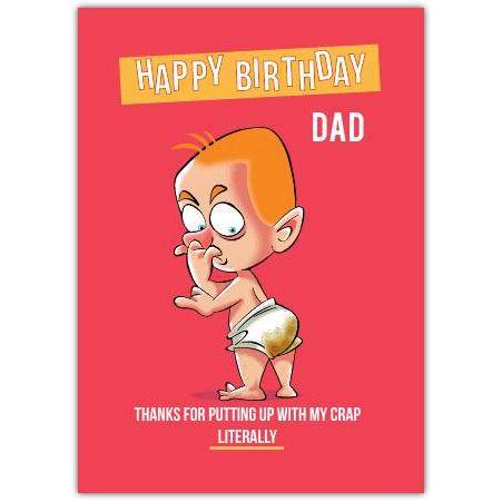 Funny Happy Birthday Card for Dad Featuring Baby with Dirty Diaper Humorous Fathers Day Card