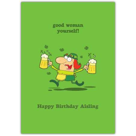 Raise a glass to good times with this humorous and endearing birthday card. It’s the perfect way to say “Good woman yourself!” and celebrate with warmth, wit, and a splash of Irish spirit.