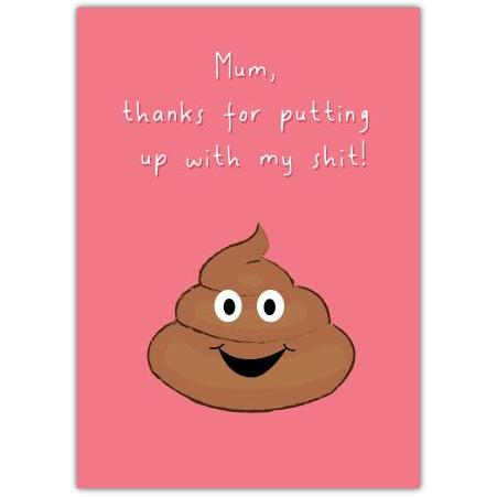 This funny Mother’s Day card is perfect for those who want to add a bit of humour and love to their message. Featuring a playful poo emoji and the hilarious message, "Mum, thanks for putting up with my shit!", it’s a lighthearted way to say thank you to the best mum in the world.
