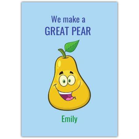 - Fun and Lighthearted: The clever pun and happy pear design make this card a charming choice to share your affection and humour.