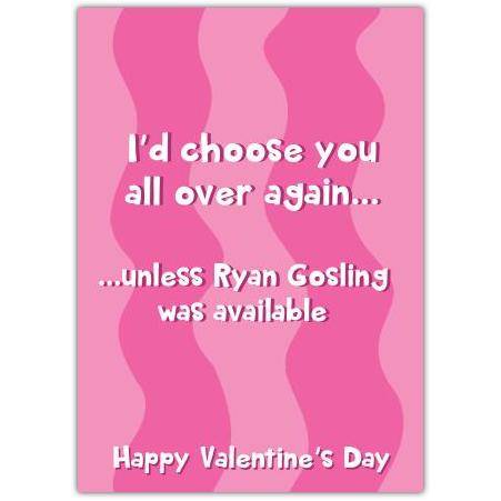 Share a laugh and your love this Valentine’s Day with this cheeky and charming greeting card. Featuring a playful message – "I'd choose you all over again... unless Ryan Gosling was available" – this card is perfect for couples who enjoy a bit of humour and honesty in their relationship.