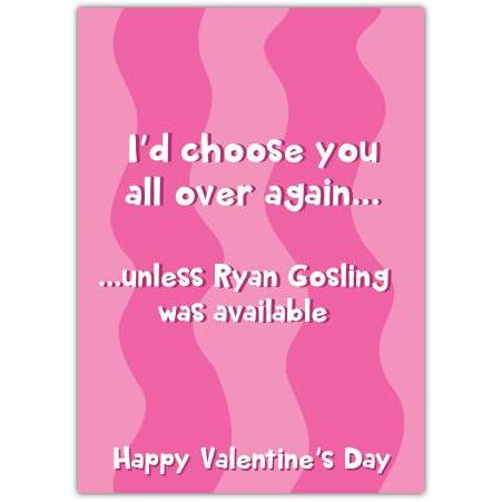 Funny Valentine's Day Card I'd Choose You Over Ryan Gosling Humorous Love Greeting
