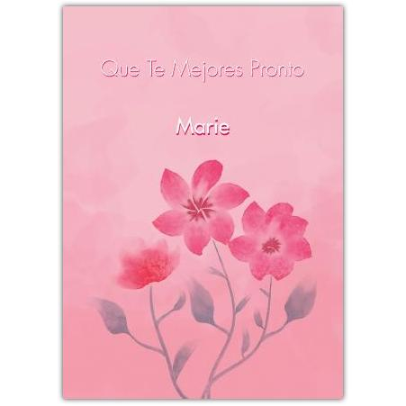 This charming greeting card, featuring delicate pink floral artwork on a soft pink background, is the perfect way to wish someone a speedy recovery. The gentle blooms convey care and positivity, making it an ideal choice to brighten the day of a loved one who is unwell.