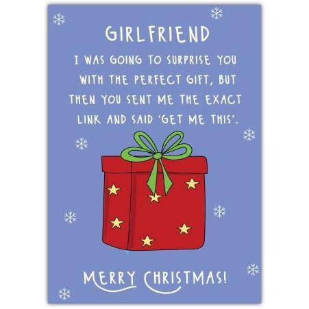 "Girlfriend – I was going to surprise you with the perfect gift, but then you sent me the exact link and said ‘Get me this’. Merry Christmas!"