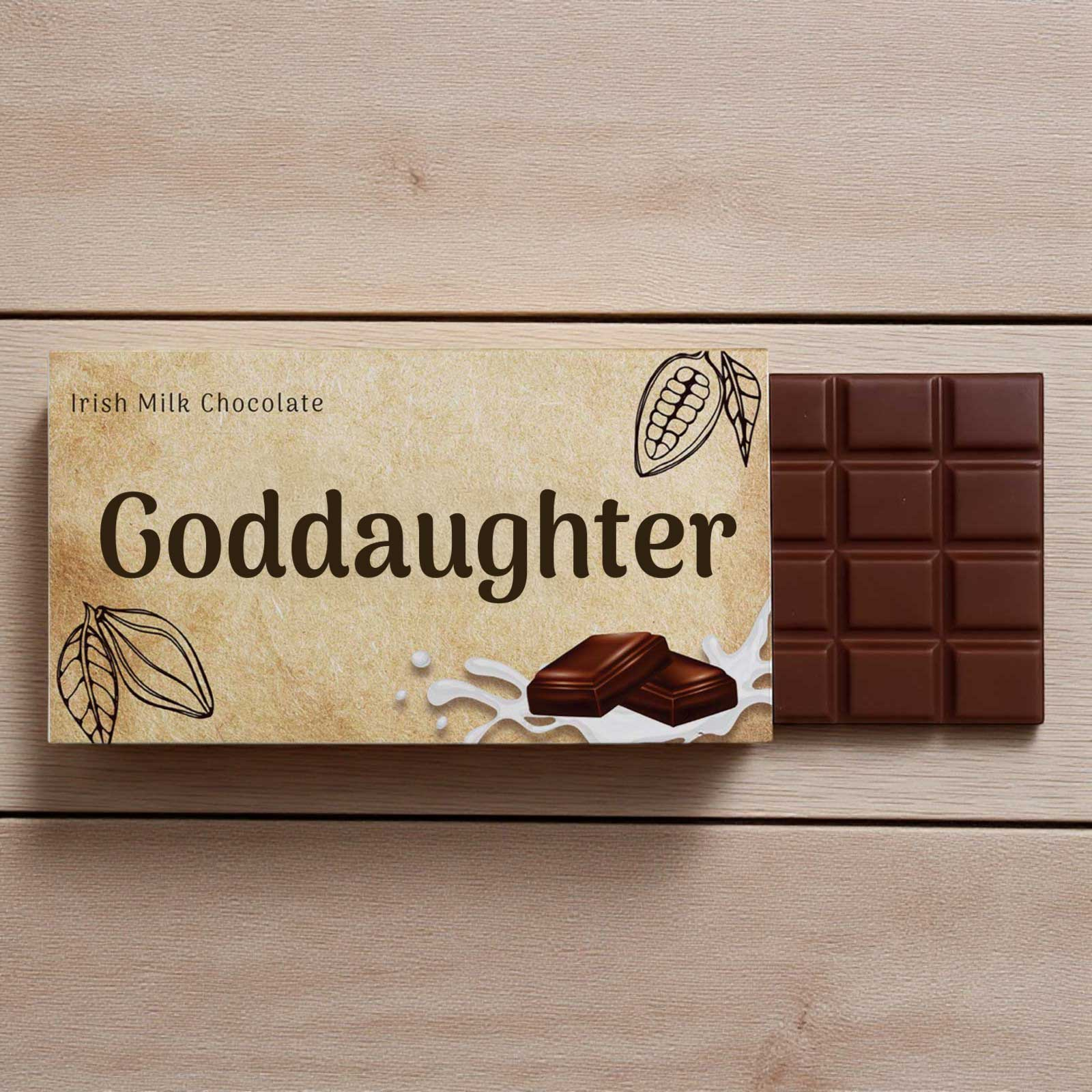 The wrapper features the bold letters "Goddaughter" illustrated in a beautiful design, making it a unique and thoughtful gift.