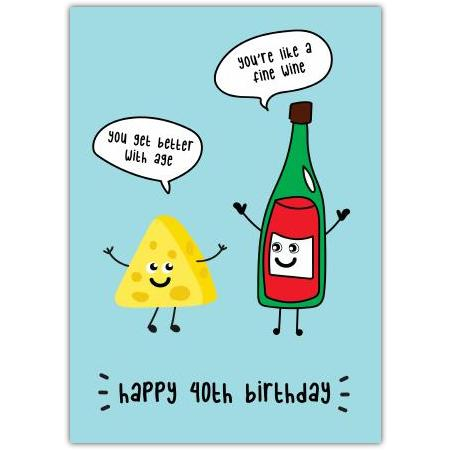 Happy 40th Birthday Cheese and Wine Humorous Greeting Card