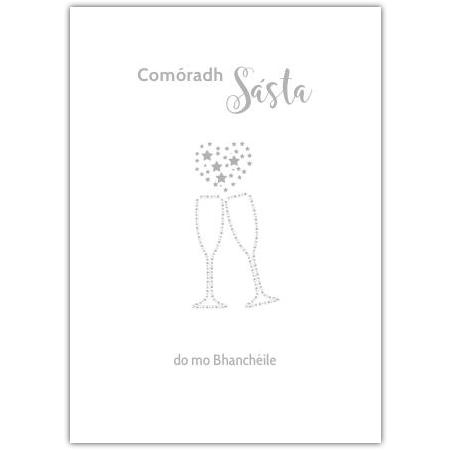 Happy Anniversary To My Wife As Gaeilge Silver Champagne Toast Card