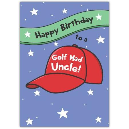 Happy Birthday Golf Mad Uncle Greeting Card with Red Cap Design
