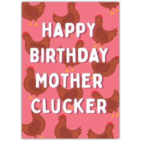 This hilarious Funny Birthday Card featuring cheeky hens on a vibrant pink background is perfect for the mother who loves a good laugh. With the playful message "Happy Birthday Mother Clucker", it’s a light-hearted and unforgettable way to send your warm wishes.