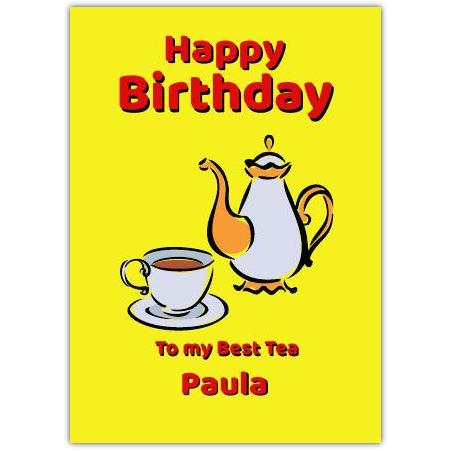 Brighten up your best friend's birthday with this charming and playful To My Best Tea Happy Birthday Card. Featuring a cheerful yellow background, a classic teapot, and a steaming cup of tea, this card pays a warm and witty tribute to your closest "best tea" – the perfect way to say you appreciate their friendship.