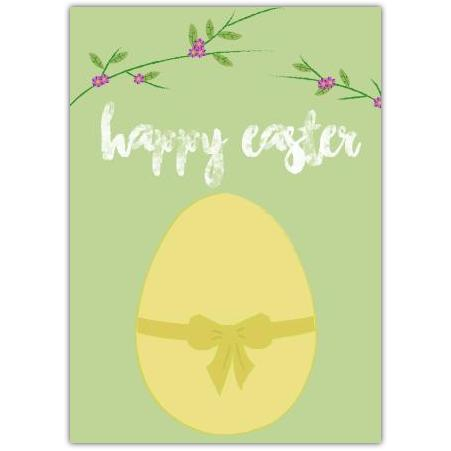 Happy Easter Yellow Egg with Bow and Floral Garland Greeting Card