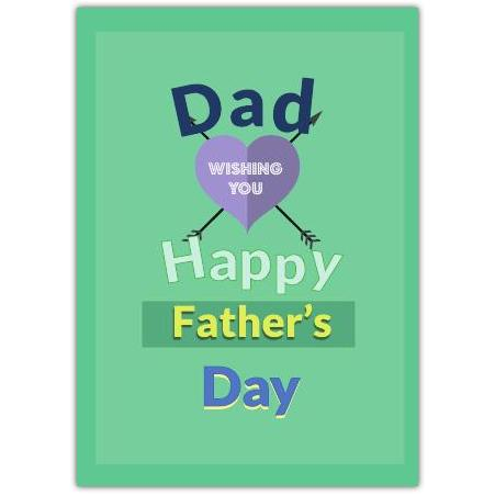 Happy Fathers Day Card with Heart and Arrows Design in Green for Dad