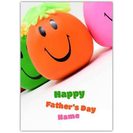 This cheerful Happy Father's Day Smiley Orange Face Card is the perfect way to bring a smile to your dad's face. Featuring a vibrant orange smiley face balloon with playful green “hair” alongside colourful companions, this card radiates happiness and fun. Its bold, friendly design makes it ideal for showing your appreciation in a joyful and light-hearted way.