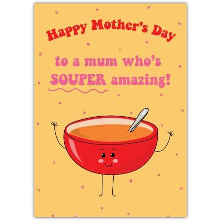 Happy Mothers Day Card Souper Amazing Mum Cute Soup Bowl Design