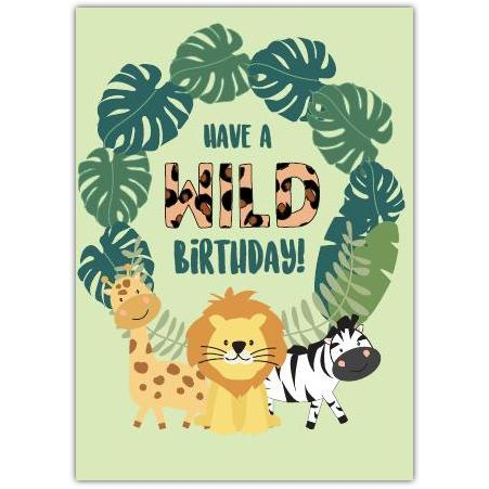 Have A Wild Jungle Animals Kids Birthday Card with Lion Giraffe and Zebra Design