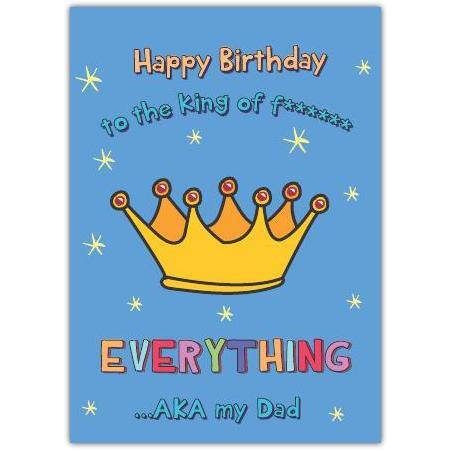 This cheeky and colourful birthday card is perfect for the dad who truly rules your world. Featuring a playful design with a golden crown and vibrant text that reads, “Happy Birthday to the King of f****** EVERYTHING ...AKA my Dad,” it delivers a fun and heartfelt message that will make him laugh and feel appreciated.