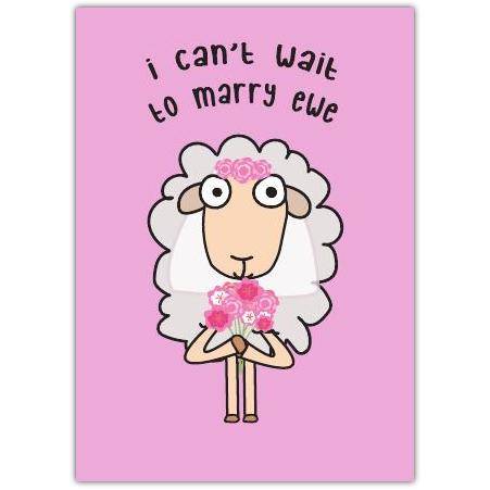 Celebrate love with a touch of humour! This charming Marriage Wedding Couple Marry Ewe greeting card features an adorable sheep bride holding a bouquet against a delightful pink background. The playful pun, "I can't wait to marry ewe", adds a lighthearted and memorable twist, making this card perfect for couples about to tie the knot.