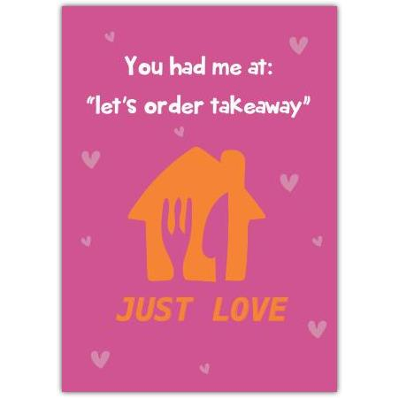 Just Love Funny Romantic Takeaway Greeting Card for Couples