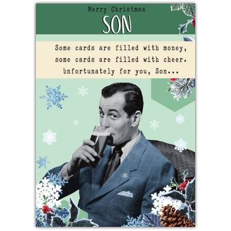 Merry Christmas Son Humorous Retro Man Drinking Pint Festive Greeting Card