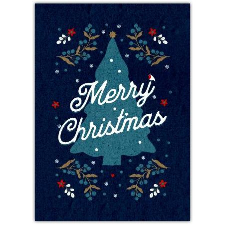 Merry Christmas Tree and Festive Foliage Seasonal Holiday Greeting Card