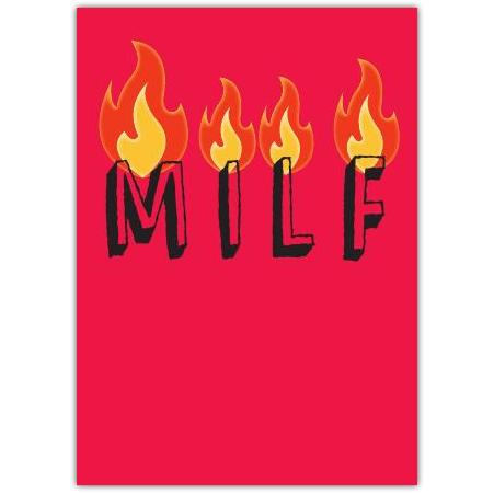 - Design: Featuring the cheeky acronym "M.I.L.F" set aflame against a vibrant red background, this card is sure to make a memorable impression and bring a smile to your mum’s face.