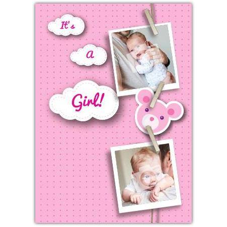 New Baby Girl Card Pink Photos on Pegs Design with Personalisation Option