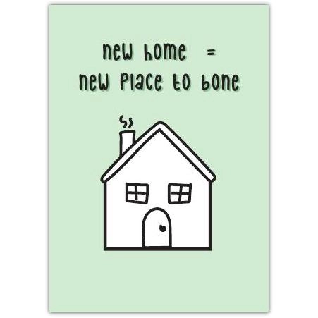 This cheeky New House Funny Rude Sexy Greeting Card is the perfect way to congratulate someone on their new home with a playful and memorable message. Featuring a simple yet charming illustration of a white house against a fresh green background, the card reads: "New home = new place to bone" – a hilariously bold take on starting life in a new space.