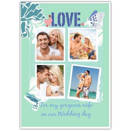 Personalised 4 Photo Butterfly Love Wedding Day Card for Wife in Green