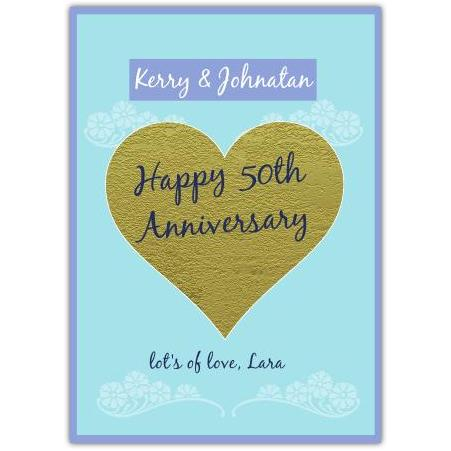 Personalised 50th Golden Heart Anniversary Greeting Card with Custom Names and Message