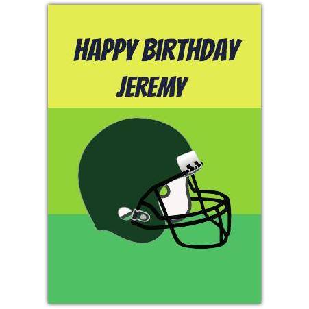 Celebrate a special birthday with this bold and sporty greeting card, perfect for any fan of American football. The striking design features a classic football helmet against a vibrant, colour-blocked background in shades of green and yellow. Personalise the card with the recipient’s name for that extra special touch that shows thoughtfulness and care.