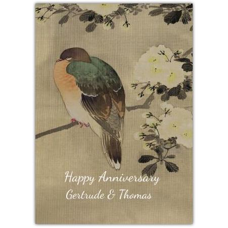 Celebrate enduring love with this beautiful Anniversary Bird Branch Greeting Card. Featuring a charming bird perched gracefully on a delicate branch adorned with soft flowers, this card captures nature’s gentle elegance and the warmth of a lasting relationship.