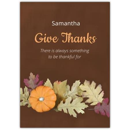 Express your gratitude in a warm and heartfelt way with this charming personalised greeting card. Featuring a beautiful autumn-inspired design, complete with a vibrant pumpkin and colourful fall leaves against a rich brown background, this card perfectly captures the spirit of thankfulness.