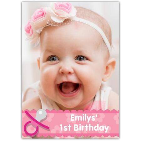 Personalised Baby Girl First Birthday Card with Pink Soother Design