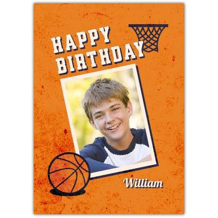 Perfect for fans of the game, this vibrant card features a bold orange background with a basketball and hoop design that instantly captures the sporty spirit. Add your own photo on the front to create a unique and meaningful birthday greeting that the recipient will truly cherish.